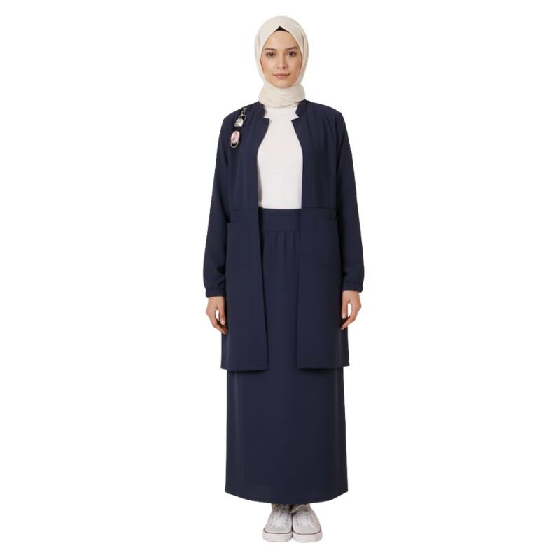 The Skirt The accompanying skirt is crafted for all-day movement. With a comfortable waistband and a straight-cut silhouette, it provides full coverage and ease of motion, ensuring you stay comfortable through long shifts.